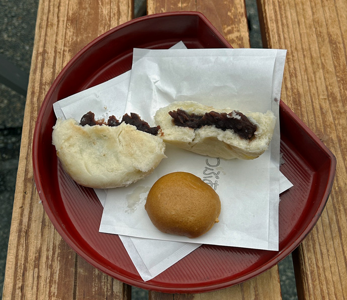 甘党の俺はフィニッシュにデザート感覚でつぶあんを行っとこっとして撮影してたら奥さんが焼きたてのまんじゅうを持って来てくれた。