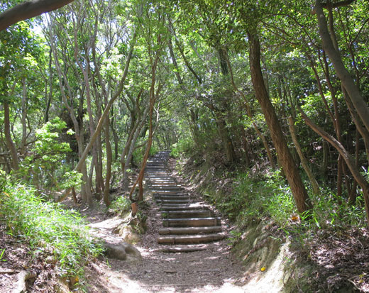 ロープウェイを下りて途中から山上まで歩くコースを辿った。