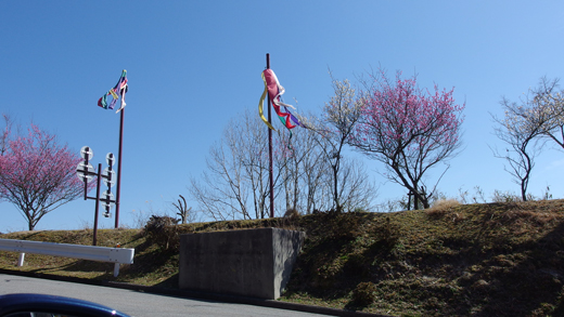 田の谷峠ゲートを抜けると青空と梅の木が目に入る。