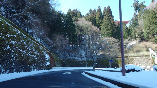 ドライブウェイの沿道に咲く、梅の木を眺めつつ、美しく舗装された道を駆け上がって行く。