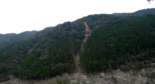 ええ感じやん!台風の影響か辺りの山々のいたるところに土砂崩れの傷跡があった。ちょっと胸が痛い。
