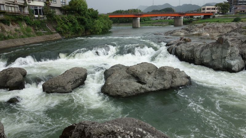 闘竜灘でニコニコで景色を眺めて撮影してたらゲリラ豪雨が...