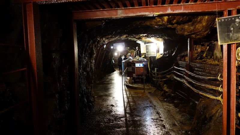 生野銀山の坑道を出て「