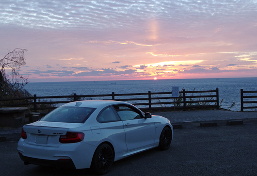 くっきりすっきりとは行かなかったけどドライブのクライマックスに想定してた夕陽を見れて最高な気分で笑みがこぼれた。