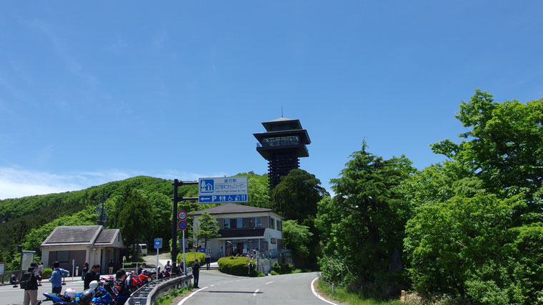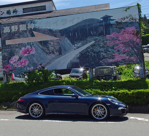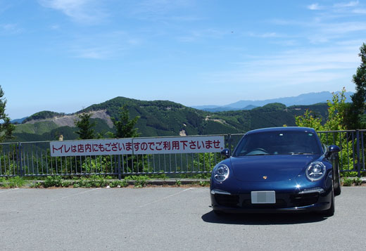 この日はライダーで盛況だった。駐車場に車を停めて山々をバックに写真を撮っていつも思うのだが、なんでこの趣味の悪い看板をぶら下げてるのか不思議だ。車を走らせようとしてると同世代らしい男性から声を掛けられた。予想どおり、GTS乗りの人だったemoji