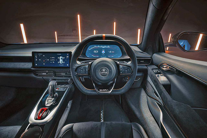インテリアもロータス?らしくないのかも知れないがレーシーなコックピットでいいと思う。インパネはおいといて、俺は好きなインテリアだ。内装色もブラック、アルカンターラで落ち着いた雰囲気でドライブしたいし、出来そうな乗り味を期待してる。試乗したいと思っています