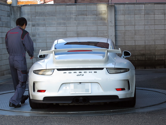 GT3の排気音の素晴らしさと乗り味がさらによくなった話を聞きながらも目はGT3に釘付けになっていた。
