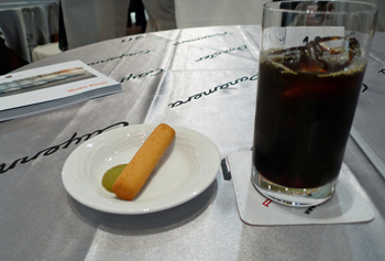 せっかくだからオーナーではないもののオーナーズラウンジでゆっくりお茶しようかと思ったらご婦人たちでいっぱいでした。仕方ないから一般客用のテーブルでアイスコーヒーで休憩することに